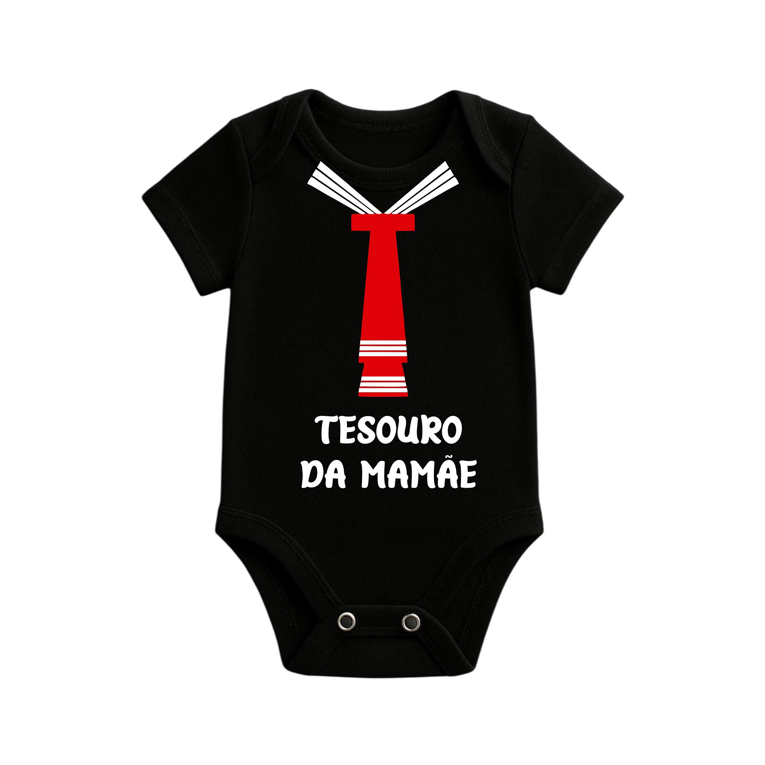 Body infantil preto - Tesouro da mamãe. Manga curta, confeccionado em 100% poliéster com elasticidade, garantindo conforto e praticidade no dia a dia.