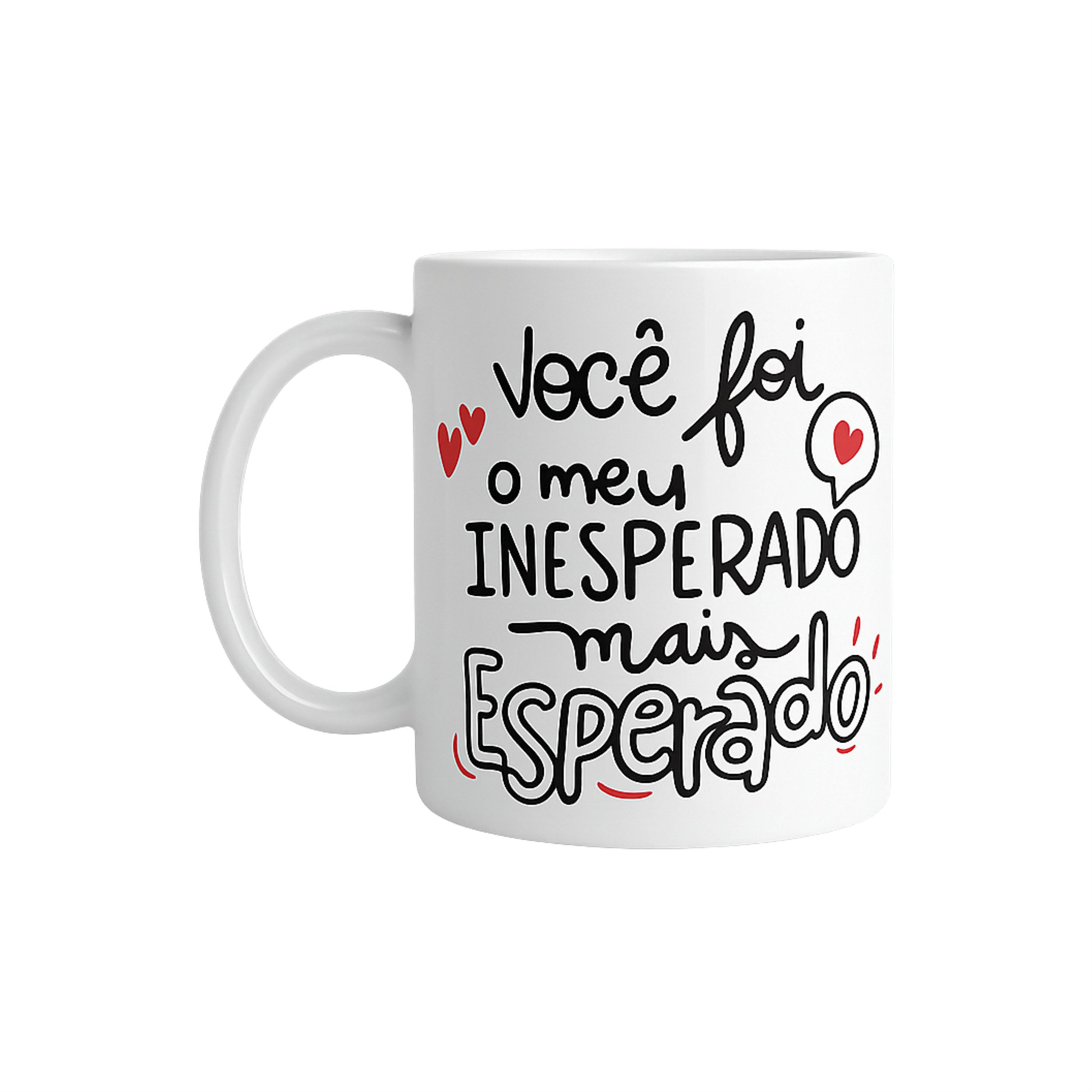 Caneca de cerâmica branca de 325ml personalizada amor inesperado.