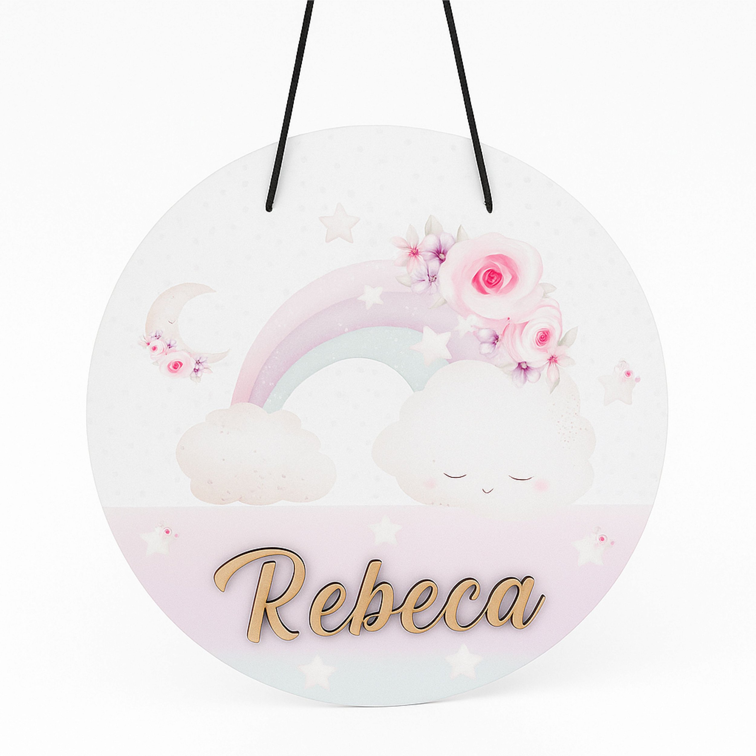 Dê um toque especial à decoração da maternidade ou do quartinho infantil com nossa placa decorativa arco-íris!