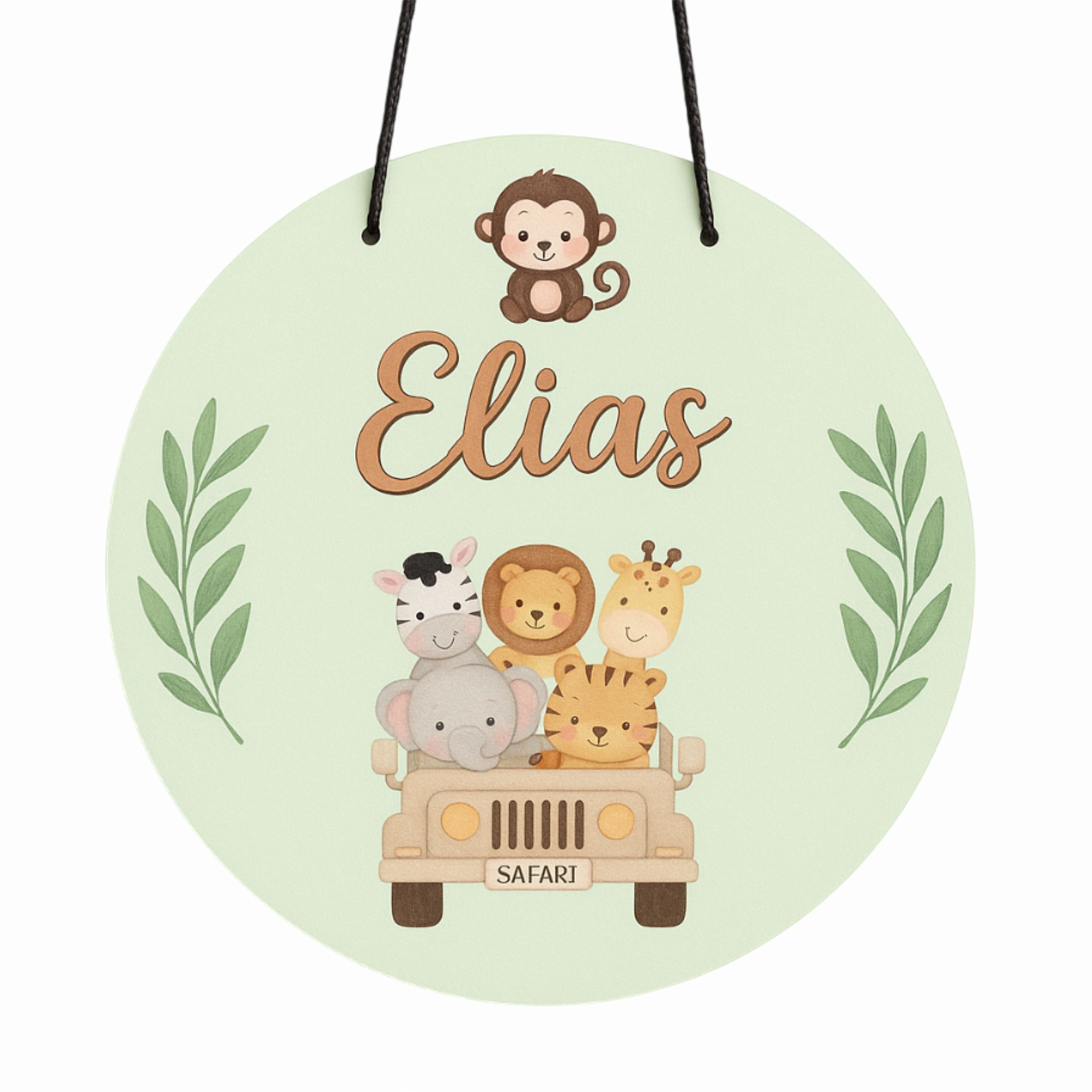 Dê um toque especial à decoração da maternidade ou do quartinho infantil com nossa placa decorativa de safari!